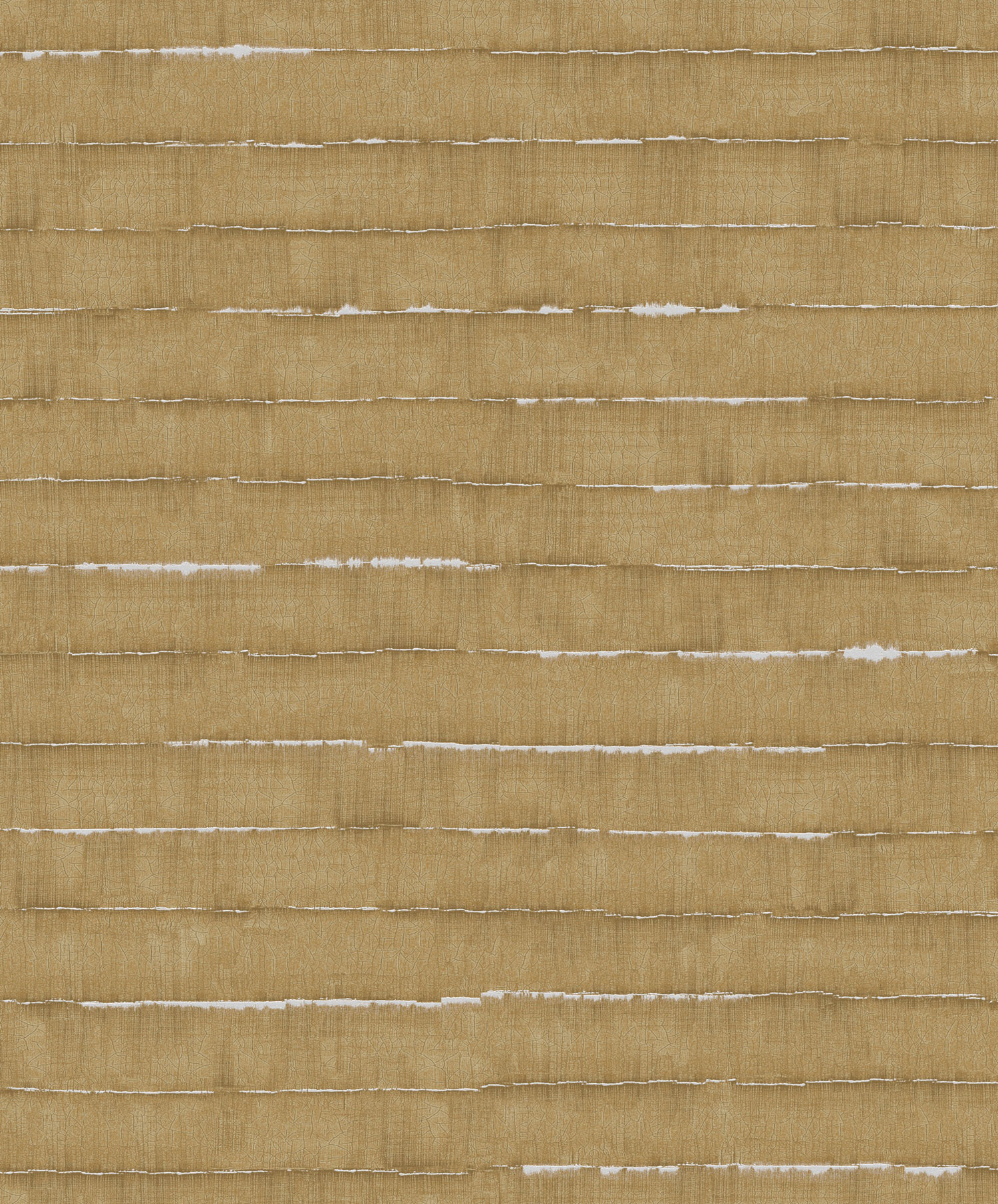 Non-woven wallpaper, shades of ocher and brown, irregular horizontal beige stripes.