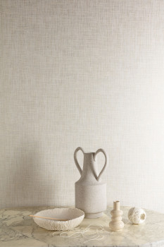 Beige non-woven wallpaper, alternating matte and semi-gloss, the pattern evokes a fabric texture.