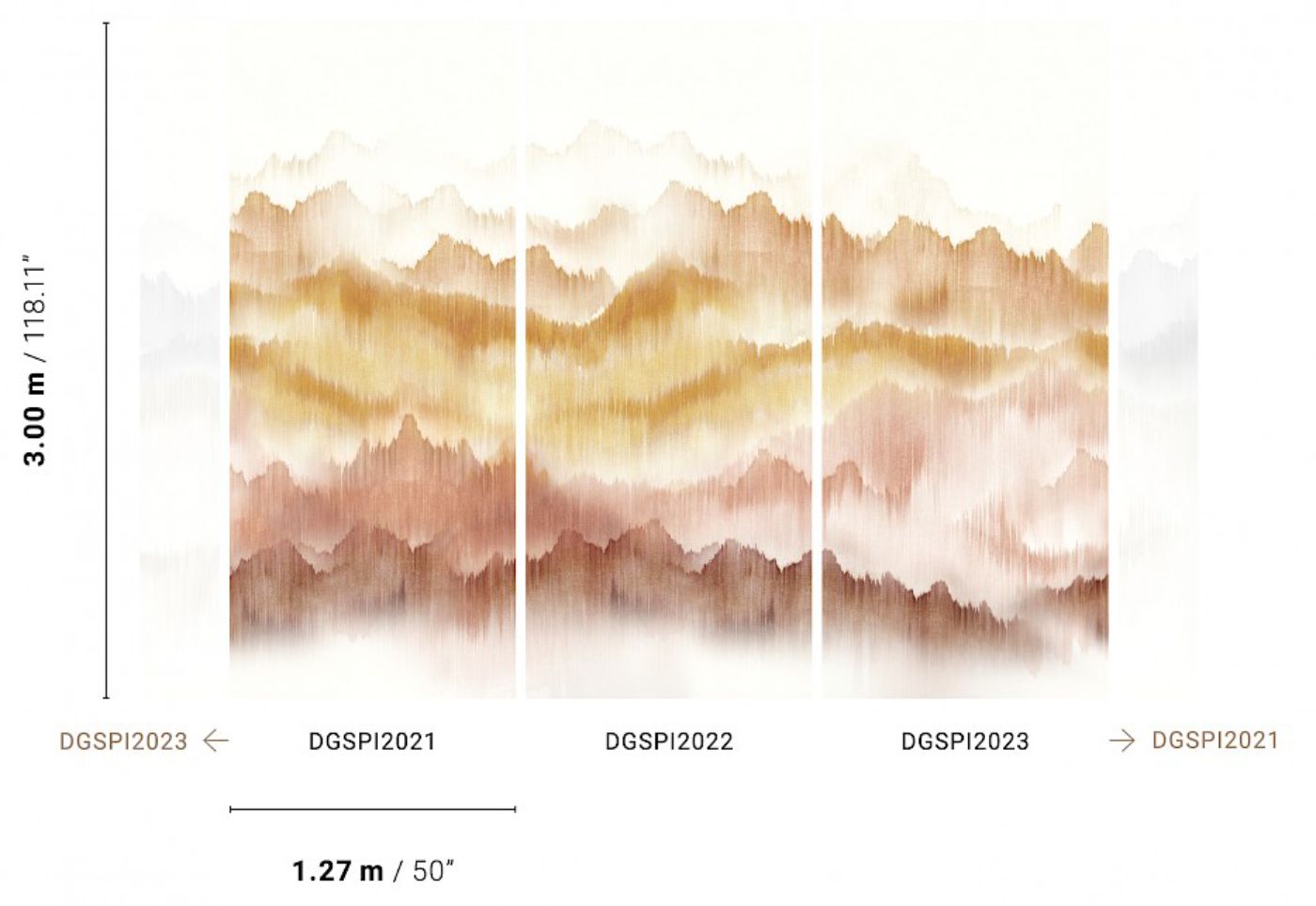 • The unique pattern of panoramic mountains was originally painted on textile yarn, resulting in a stunning watercolor effect. The irregular background adds depth to the drawing.