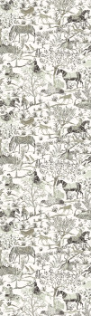 Non-woven wall mural, motif of nature, horses and other animals. Coarse fabric texture. For greater width can be combined with wallpaper DGSUM1021 - see photo. Interior photo is for illustration only