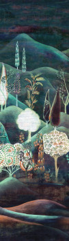 Each pattern and motif in this wallpaper collection reflects inspiration from the Indian landscape, where flowers, leaves, and trees are immensely important elements. Indian culture has a strong bond with nature, evident in the wallpaper patterns of this collection, highlighting not only the visual beauty of flowers, leaves, and trees but also respecting the deep meaning nature holds for Indian lifestyle.
