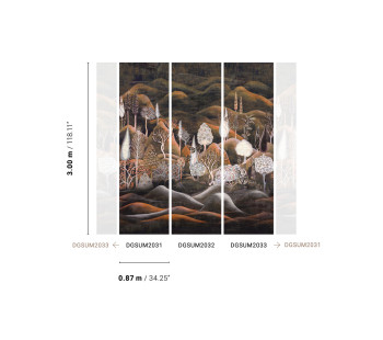 Non-woven wall mural, motif of nature, trees, landscape. Coarse fabric texture. For greater width can be combined with wallpaper DGSUM2032 and DGSUM2033 - see photo. Interior photo is for illustration only