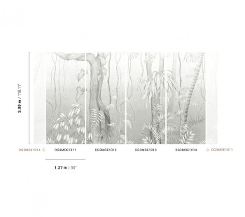 Gray non-woven wall mural with a motif of leaves and trees. Interior photo is for illustration only. Can be combined with wall murals DG3MOE1011, DG3MOE1012 and DG3MOE1013 for greater width - see photo.