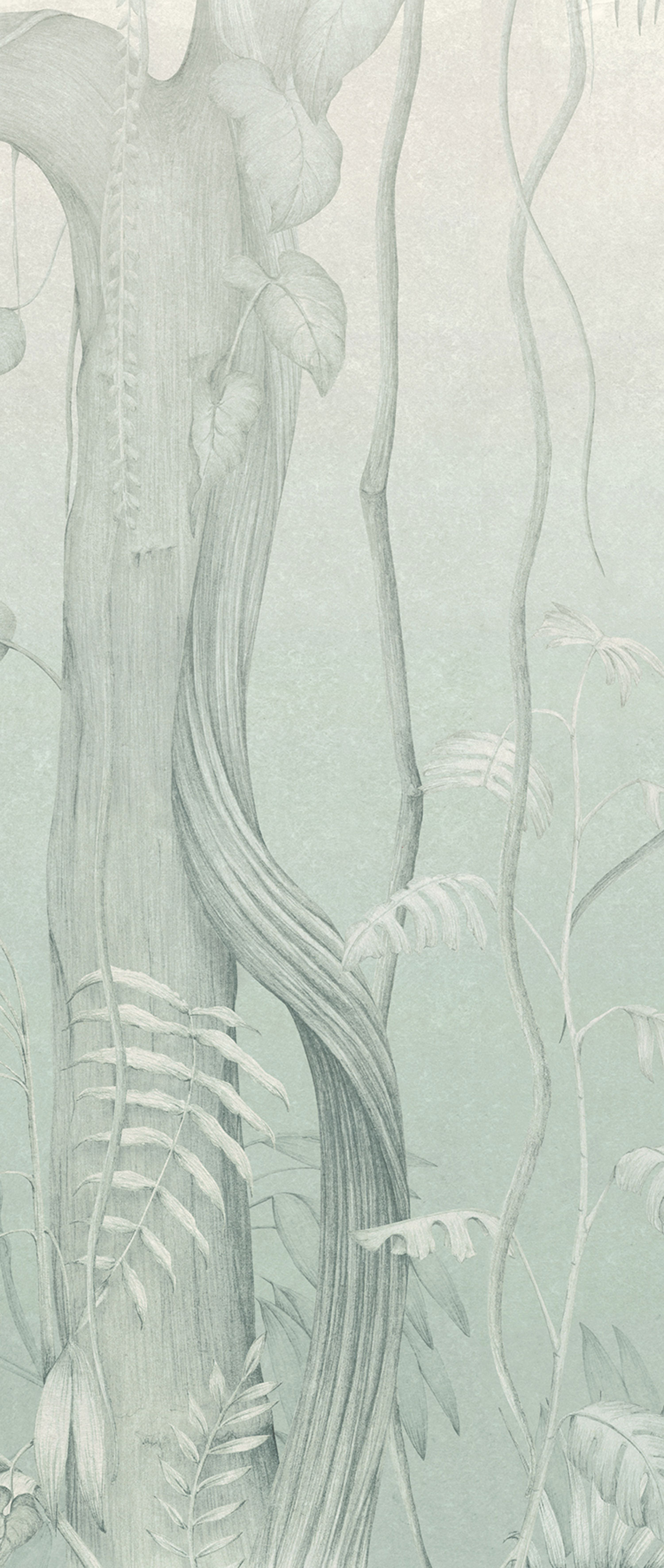 Gray-blue wall mural, Leaves, trees, DG3MOE1022, Wall Designs III, Khroma by Masureel