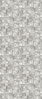 Gray non-woven wall mural, historic houses. The wallpaper has a continuous pattern, for a larger width just buy another piece - see photo.