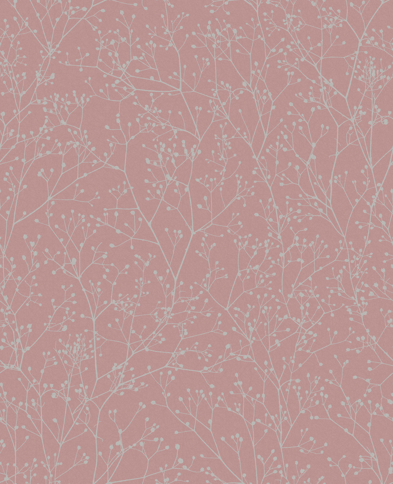 Pink non-woven wallpaper, motif of small twigs in the color of rose gold.