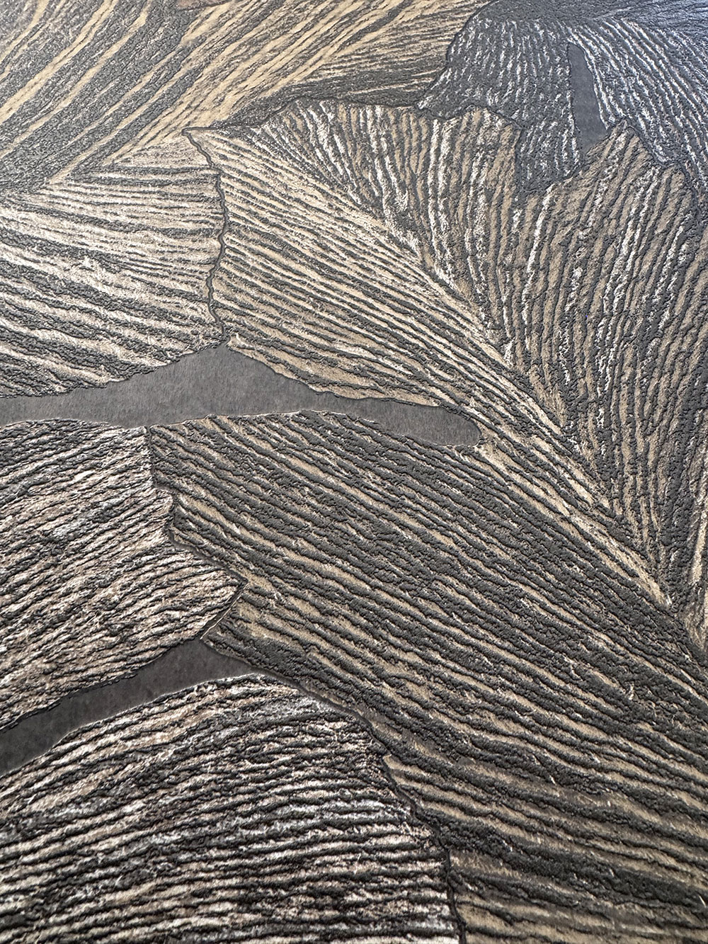 Embossed non-woven wallpaper, leaves in shades of brown.