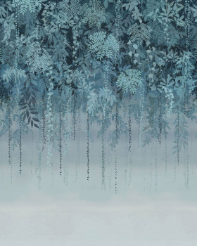 Beautiful non-woven wall mural Enchanted Vale featuring intricate layers of leaves and vines cascading down a vibrant ombre sky, it will instantly become the focal point of any room thanks to its exquisite botanical detail and elegant composition.
