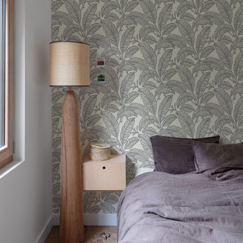 Black and white wallpaper, leaves, A66402, Vavex 2025