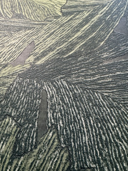 Embossed non-woven wallpaper, leaves in shades of green.