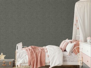 Subtly embossed gray-black non-woven wallpaper with vinyl surface, the pattern evokes the skin of a tiger.