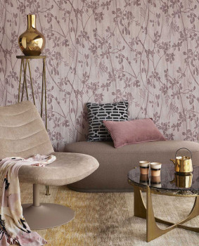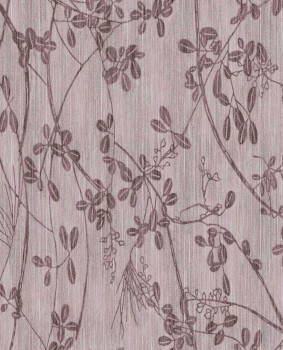 Gently embossed purple non-woven wallpaper with vinyl surface, motifs of twigs and leaves.