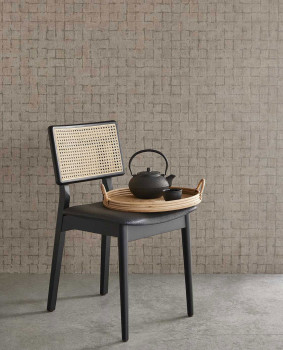 Brown-grey non-woven wallpaper, imitation rustic square fabric.