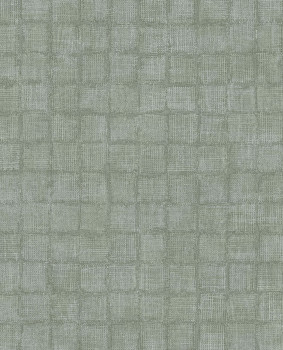 Green semi-gloss non-woven wallpaper, imitation rustic square fabric.