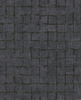 Grey semi-gloss non-woven wallpaper, imitation rustic square fabric.