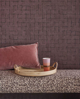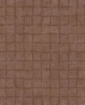 Brown / terracotta semi-gloss non-woven wallpaper, imitation rustic square fabric. Interior photo is for illustration only - different colours.