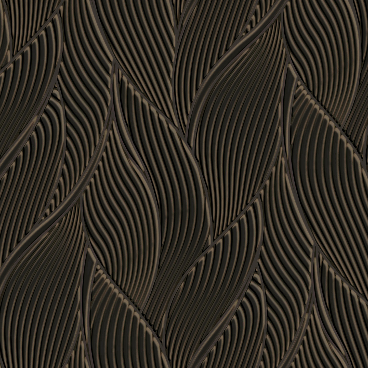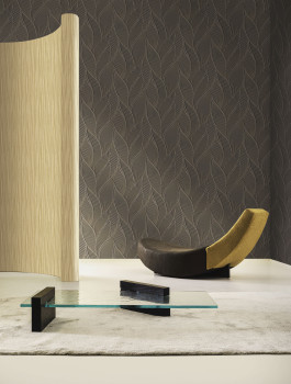 Luxury non-woven wallpaper with vinyl surface, brown semi-gloss metallic leaves.