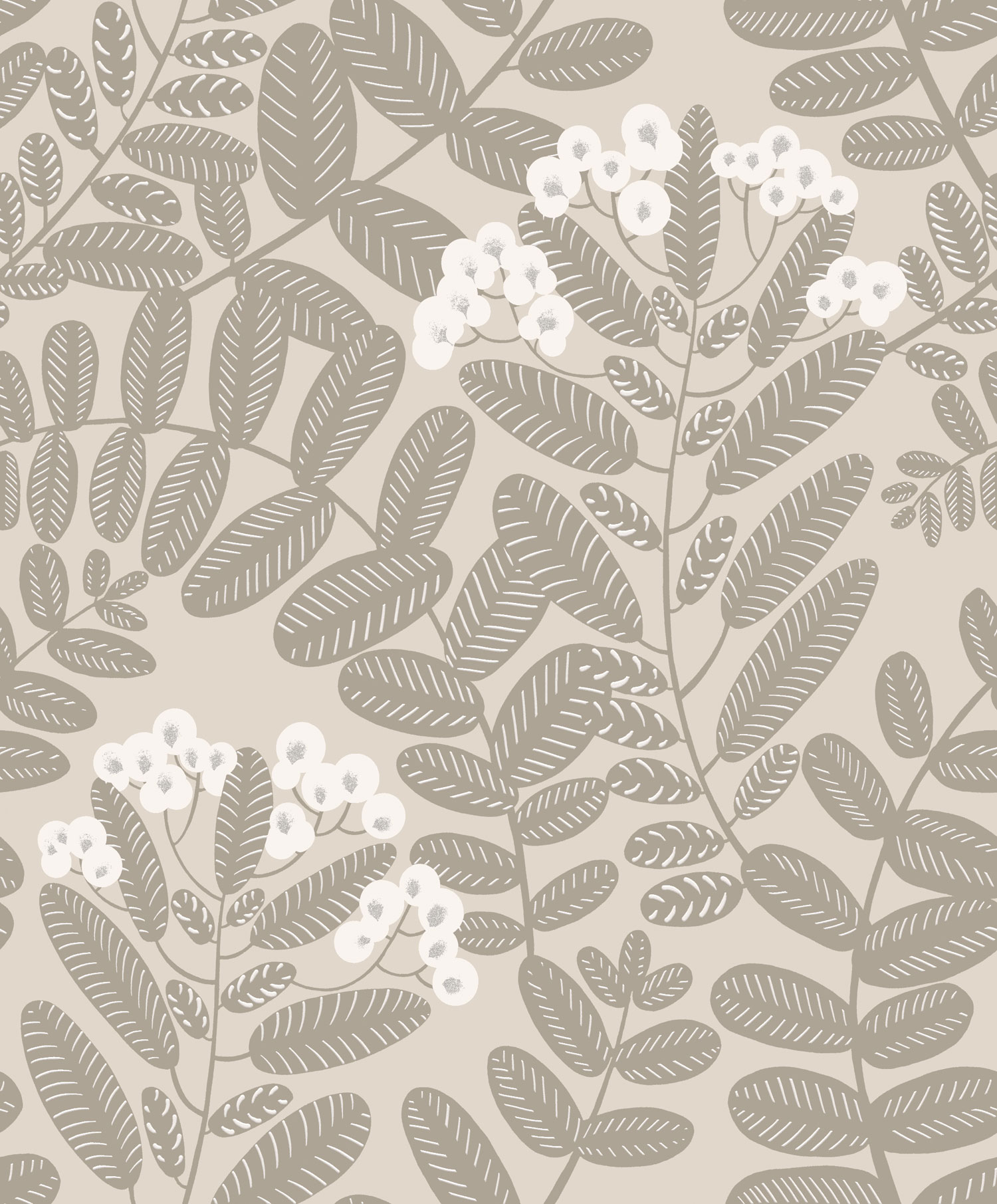 Beige non-woven wallpaper, leaves, YSA001, Mysa, Khroma by Masuree