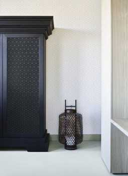 Geometric patterns give your interior a modern and dynamic look. Gray-silver geometric pattern on a white non-woven wallpaper creates an optical illusion.