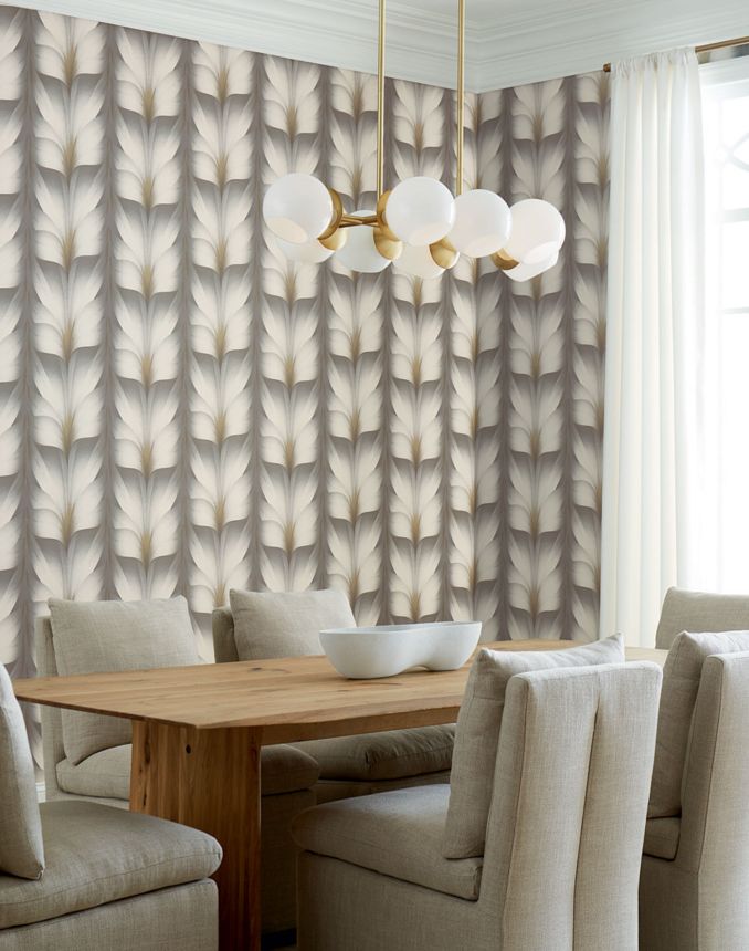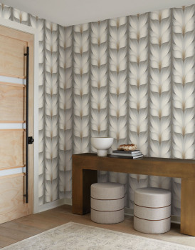 Effective geometric non-woven wallpaper, shades of gray, cream and brown.