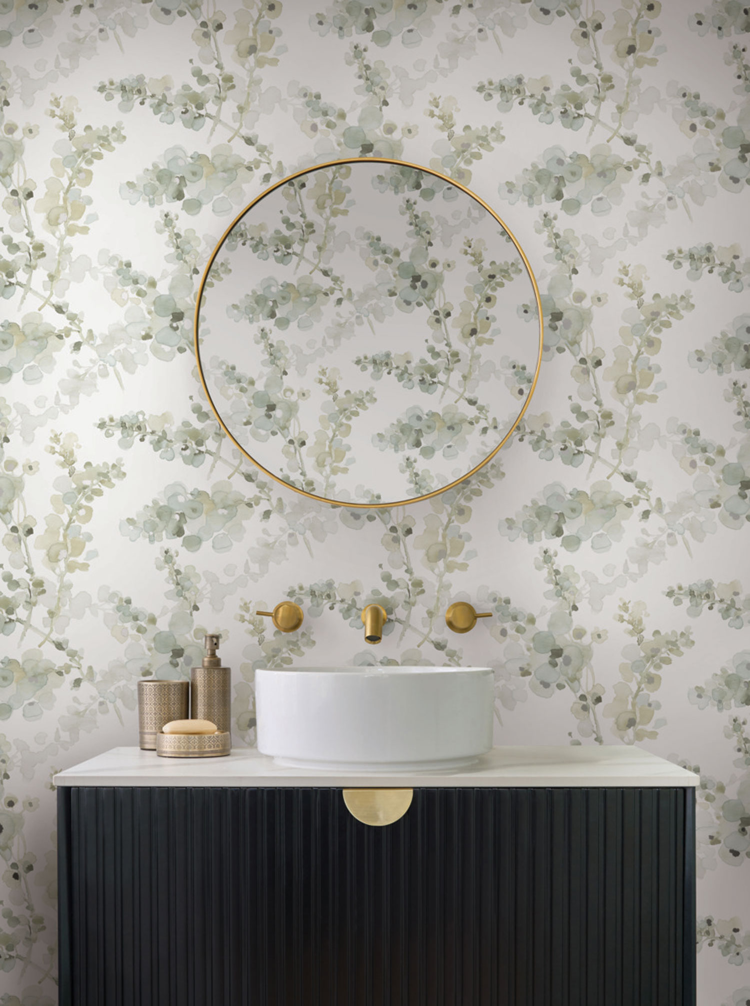 Gray-green-beige floral wallpaper, EV3972, Candice Olson Casual Elegance, York