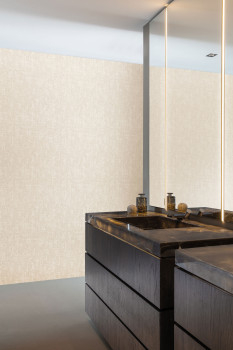 Semi-glossy beige non-woven wallpaper. Interior photo is for illustration only - different colours.