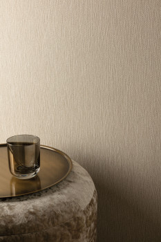 Semi-gloss textured brown-beige non-woven wallpaper with vinyl surface.