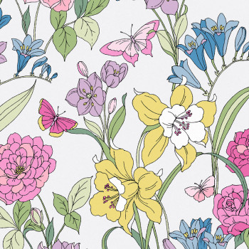 White floral wallpaper with butterflies, 119846, Laura Ashley 3