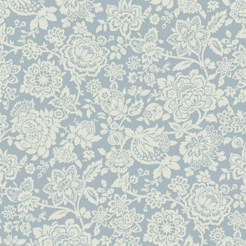 Ocher-white non-woven wallpaper, floral pattern.