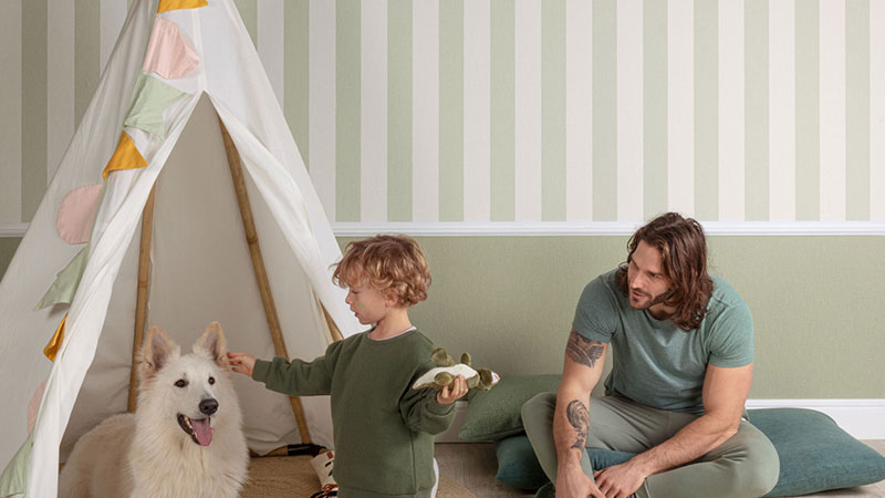• Wallpapers that can handle it all. The strong non-woven backing ensures easy hanging and removal, while the vinyl surface adds outstanding resistance to scratches and moisture. A great choice for hallways, kitchens or living rooms where walls really take a beating. Big bonus? Easy care – just wipe with a damp cloth. Step-by-step instructions are available in our wallpapering guide.