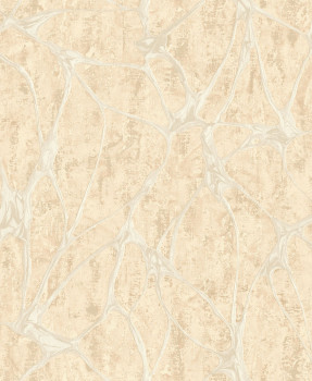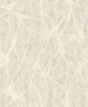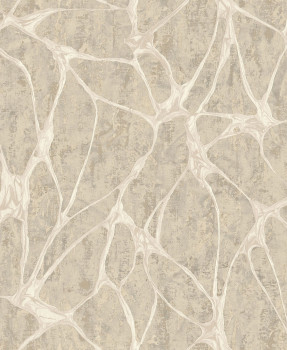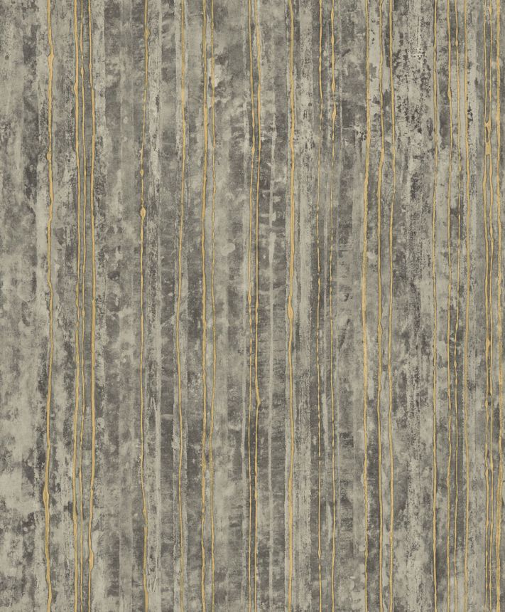 Luxury non-woven wallpaper in gray with a distinctive golden marble pattern on a background imitating stucco plaster.