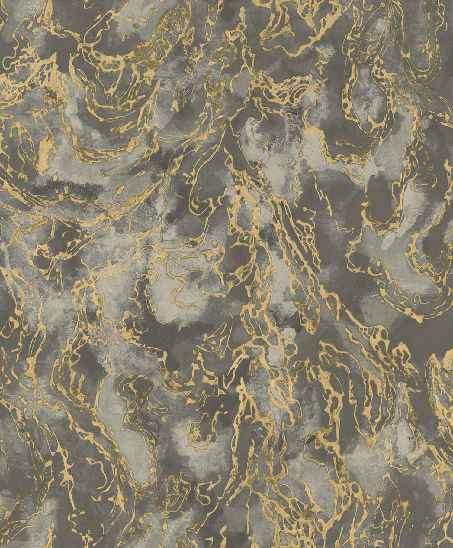 Luxury metallic non-woven wallpaper in gray with embossed golden texture on a background imitating stucco.