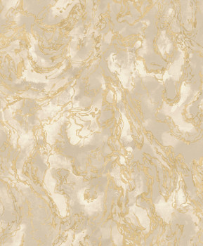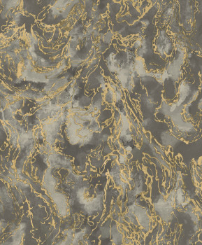 Luxury metallic non-woven wallpaper in gray-brown with embossed golden texture on a background imitating stucco.