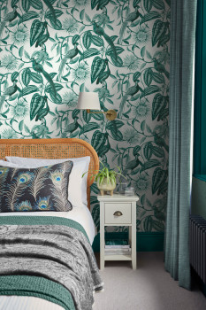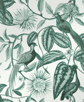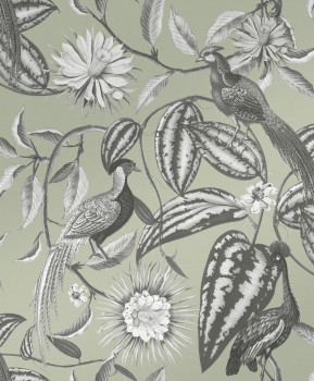 Grey-green wallpaper with flowers and birds, 120650, Retreat, Graham&Brown Premium