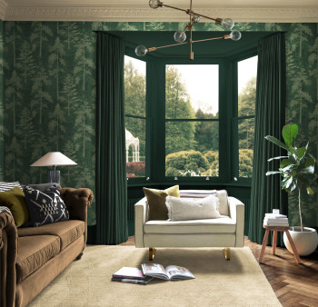 Green non-woven wallpaper, forest, trees, 121425, New Eden, Graham&Brown Premium