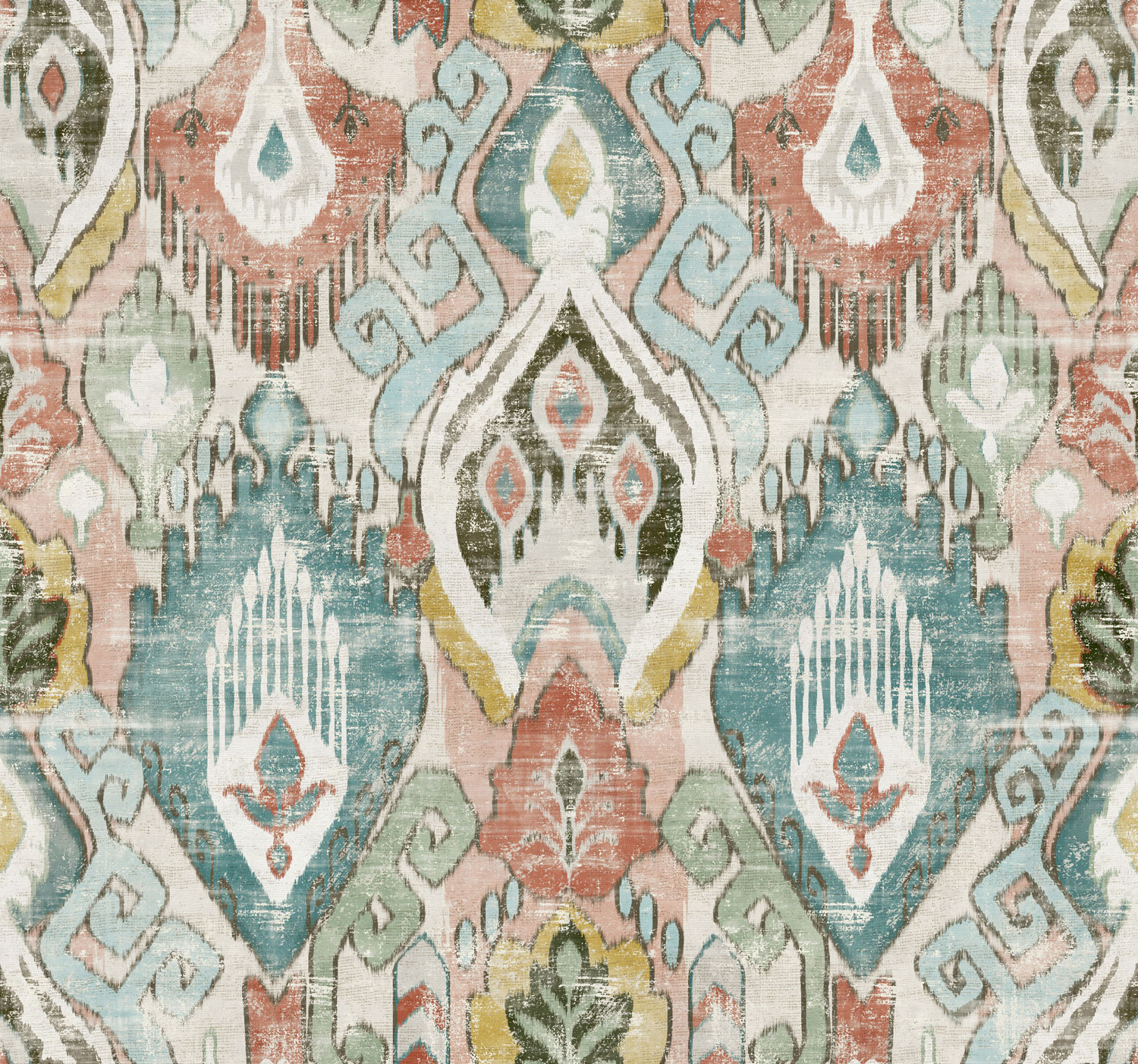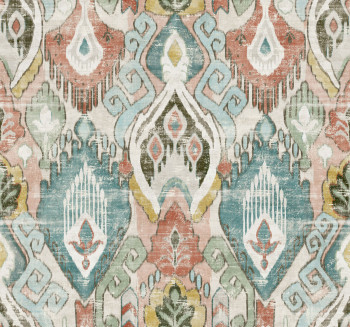 Non-woven wallpaper, the pattern evokes a vintage ethnic pattern.
