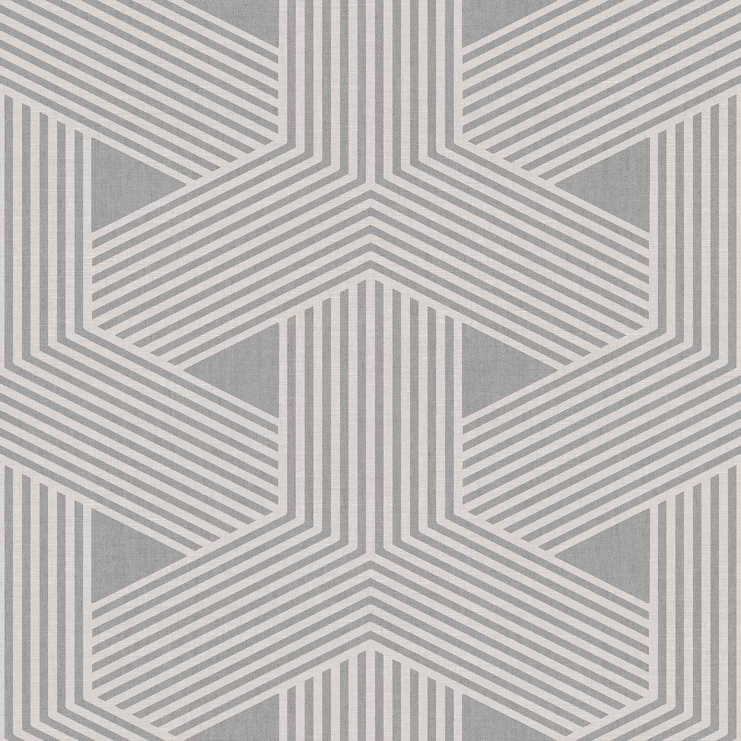 Luxury non-woven wallpaper with vinyl surface and geometric pattern in silver and white. Interior photo is for illustration only - different colours.