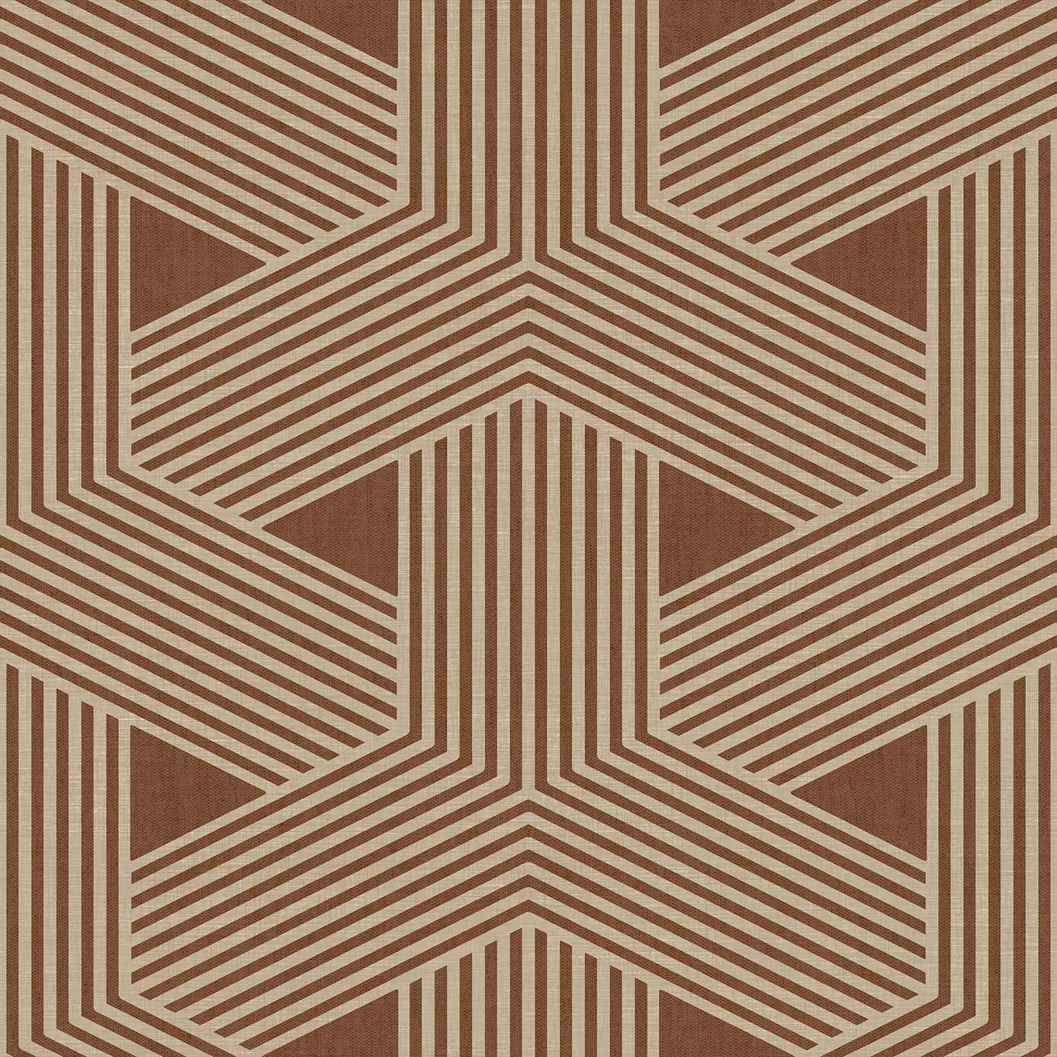Luxury non-woven wallpaper with vinyl surface and a geometric pattern in brown and beige.