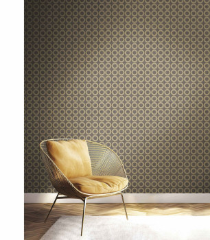 Luxury non-woven geometric wallpaper with vinyl surface, pattern of green rings on light background. Interior photo is for illustration only - different colours.