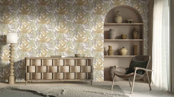 Beige-gray wallpaper, tropical leaves, 26416, Thai, Cristiana Masi by Parato