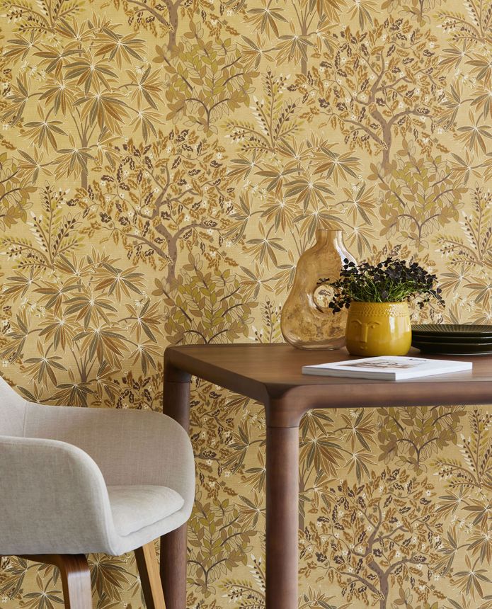 Ocher wallpaper with twigs and leaves, 333525, Festival, Eijffinger