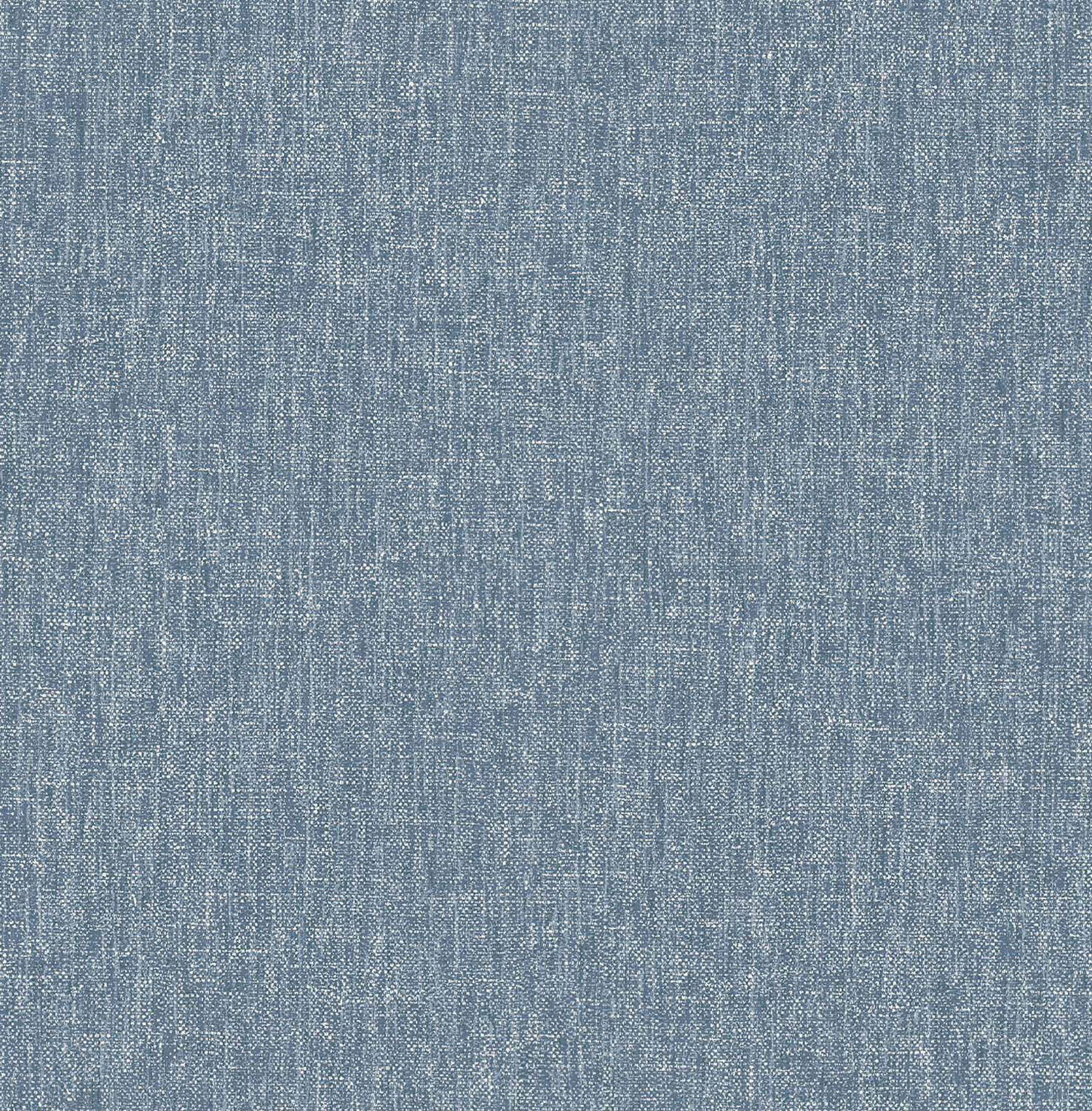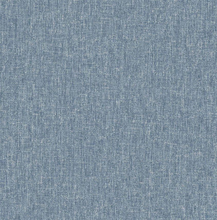 Blue, finely textured, non-woven wallpaper, the pattern evokes the texture of fabric.