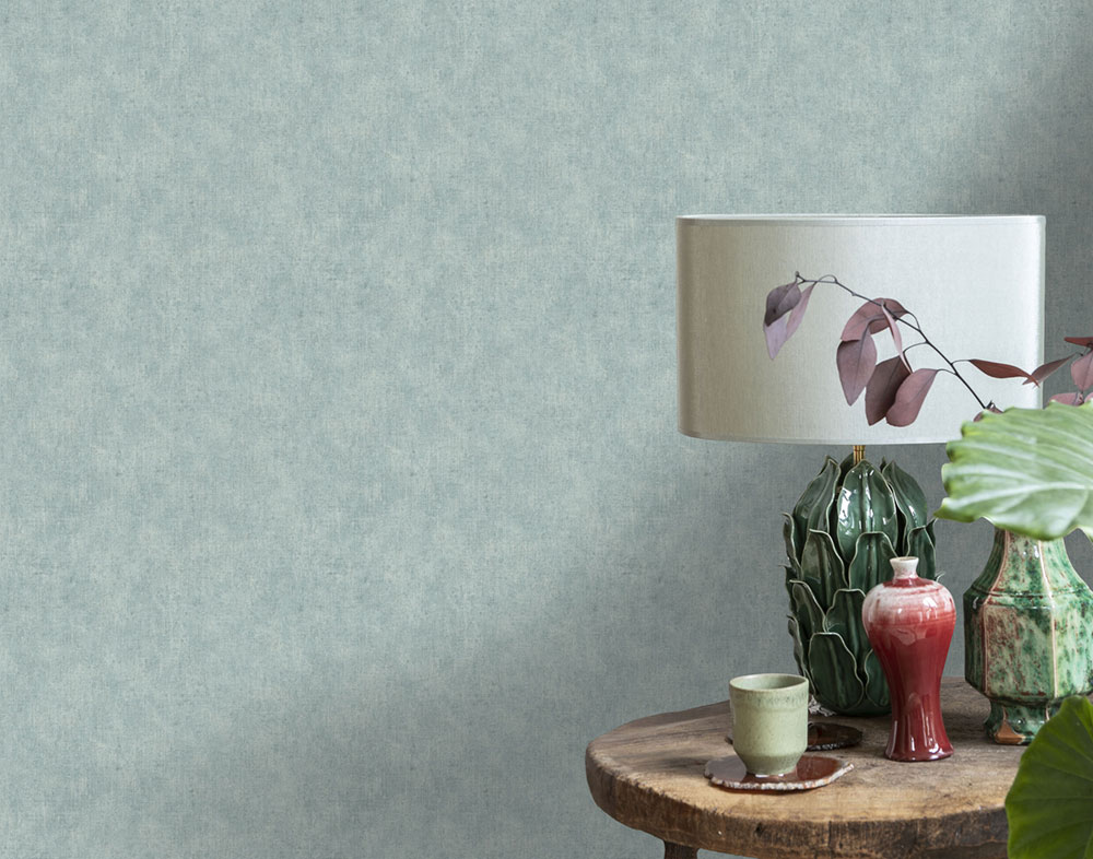 Non-woven wallpaper with vinyl surface, fabric texture, turquoise shades.