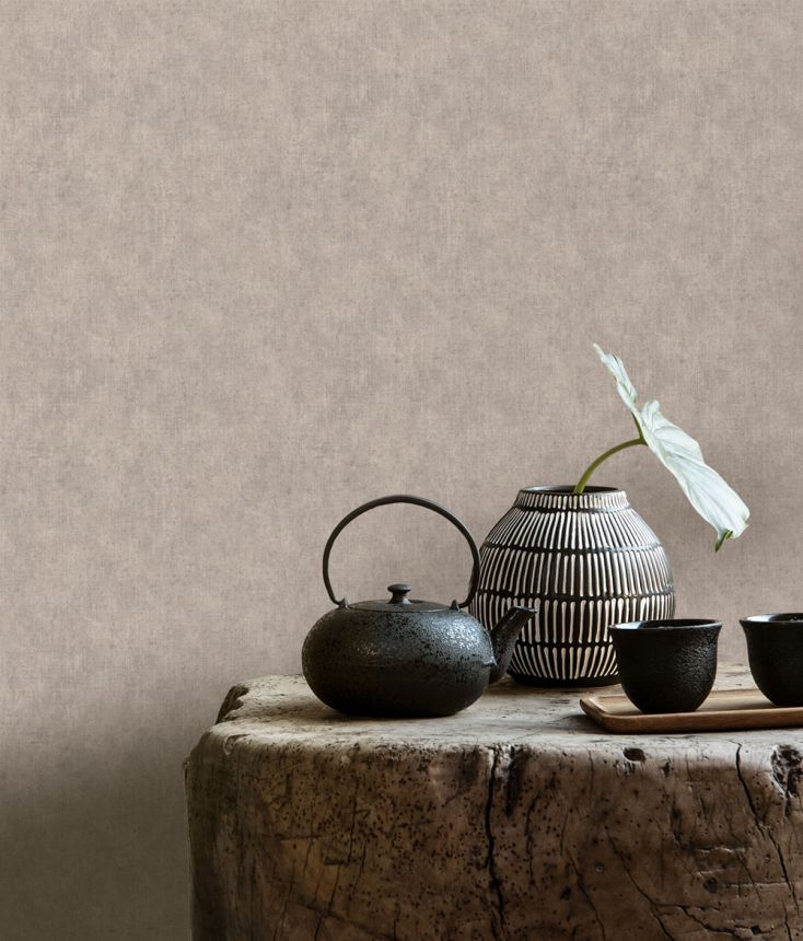 Non-woven wallpaper with vinyl surface, fabric texture, shades of brown.