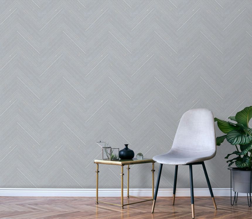 Non-woven wallpaper with vinyl surface, fabric texture, zigzag pattern, shades of blue and gray.