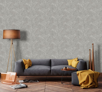 Non-woven wallpaper with vinyl surface, graphic pattern in shades of grey.