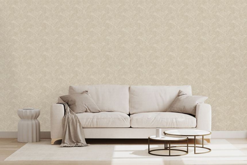 Non-woven wallpaper with vinyl surface, graphic pattern in shades of beige.