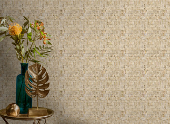 Non-woven wallpaper with vinyl surface, cork imitation, beige shades, bronze highlighting.