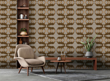 Non-woven wallpaper with vinyl surface, brown-gray background, bronze leopard motif.