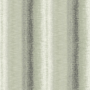 Finely embossed, striped, green and gray, non-woven wallpaper with vinyl surface, in places metallic silver reflections.